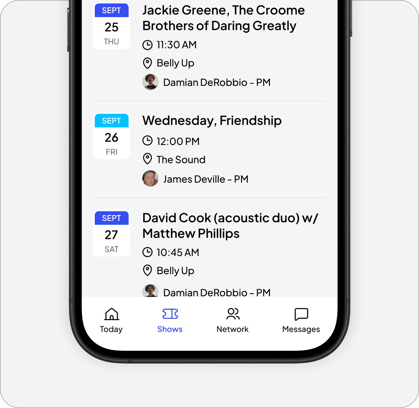 Live music is a relationship business. The same crew members work across multiple venues. Artists tour with consistent teams. Agents and promoters connect dozens of shows per year.